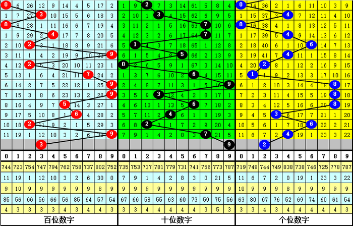 断档分析:上期奖号2路号码断档,1路号码表现较热。最近10期012路断档次数分别为0次、5次、3次,其中1断档次数较多,0路断档次数较少,本期注意1路号码断档,防0路号码转热。